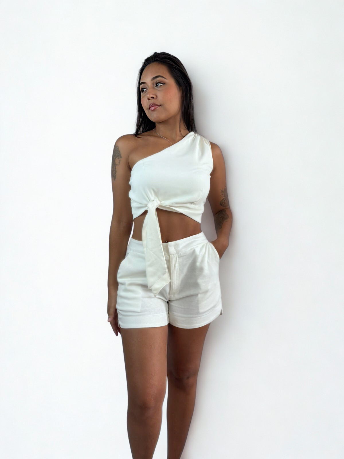 A Blusa Safira é confeccionada em crepe valentino e traz modelagem assimétrica de um ombro só, com amarração lateral que valoriza a silhueta. O detalhe dourado aplicado no ombro adiciona charme e elegância, tornando a peça perfeita para looks marcantes e cheios de estilo.